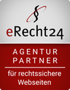 Als eRecht24 Agentur-Partner können wir unsere Kunden bei der Umsetzung einer Datenschutzerklärung und beim Thema Impressum unterstützen.